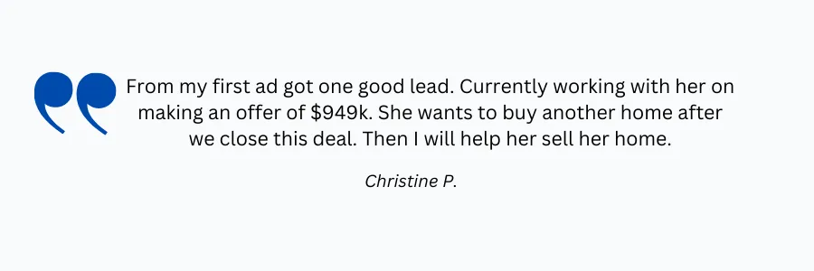 We help real estate agents increase their GCI by delivering high quality leads and booked appointments. Because we do all the advertising and lead qualification for you, you can grow your business without spending time learning digital marketing and technology. We not only help drive dramatic growth, but we also typically save our clients 10 -15 hours per week so they can focus on servicing clients and closing deals.