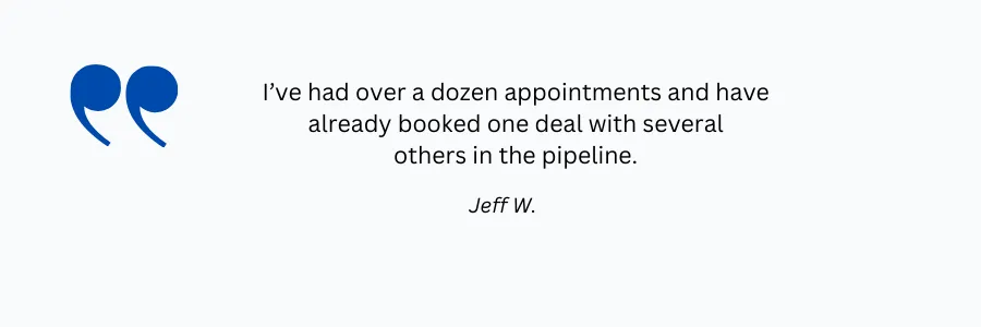 Finally, our team of direct outreach specialists manually qualifies the leads, prioritizing the ones who are ready to act within 6 months and weeding out the tire kickers. We then hand them off to our agents as either a booked appointment or live transfer!